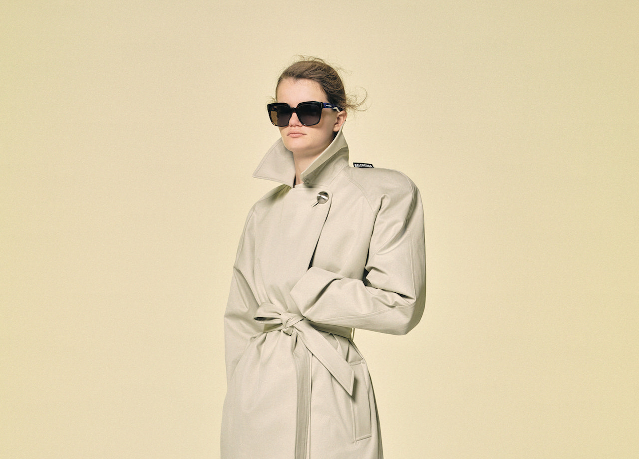 モード偏差値を一気に引き上げてくれるショルダーコンシャスなトレンチ。肩に配したロゴ入りのタグに視線を注がずにはいられない。エクストリームなシルエットが旬な一着。コート ¥357,000 ブーツ 参考商品/ともにBalenciaga(バレンシアガ ジャパン 0570-000-601)サングラス ¥48,000/Balenciaga(ケリング アイウエア ジャパン 0800-555-1001)