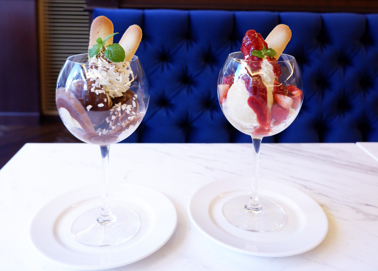 イタリアでパフェに当たるのは「コッパ」と呼ばれ、イタリア語でグラスのこと。カフェ コヴァ ミラノでは常時5種類のコッパをラインナップしています。まずは代表的なメニューをいただきました。