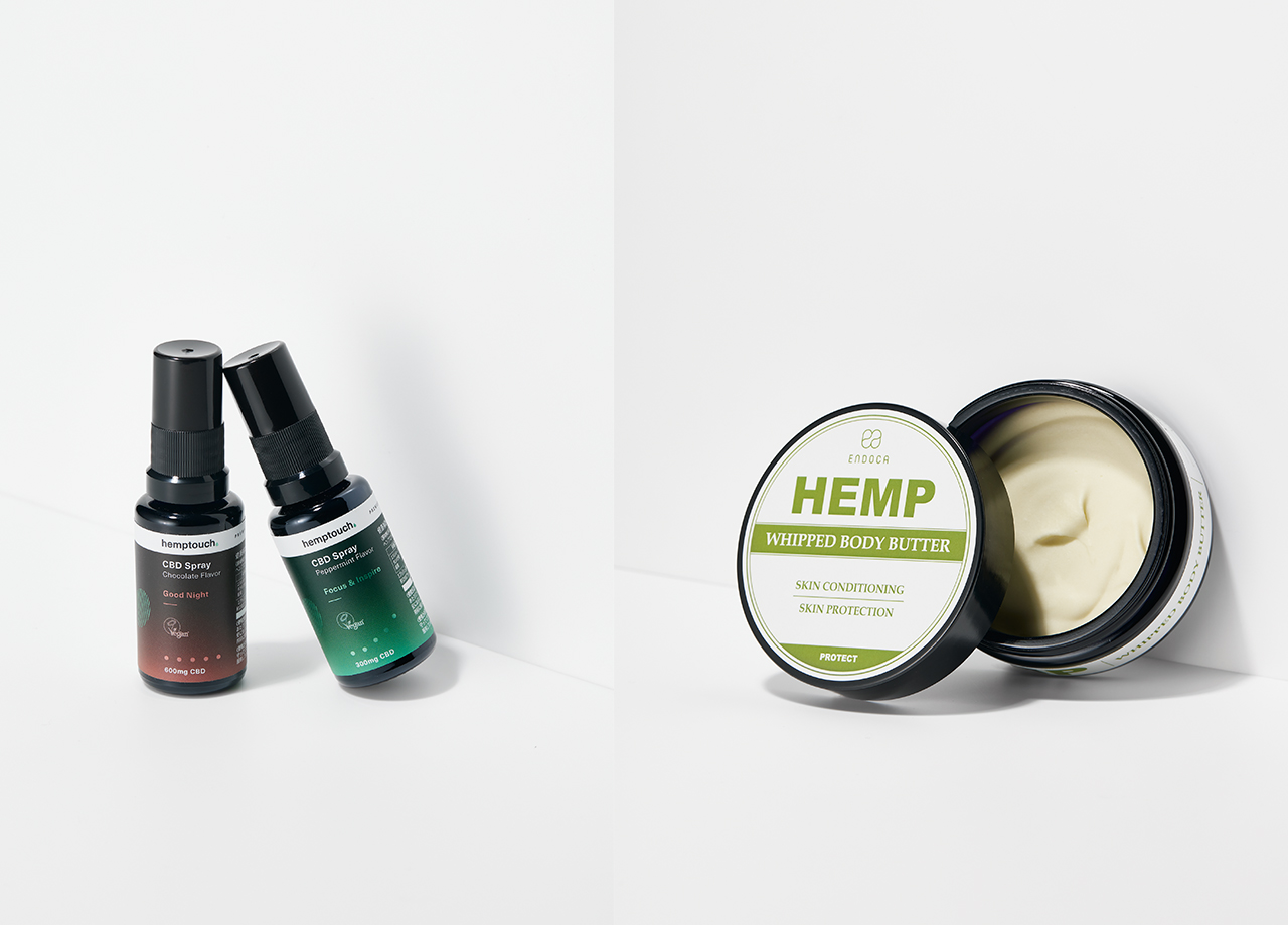 CBDスプレー 左:チョコレートフレーバー Good Night 600mg 3% 20ml ¥6,345、右:ペパーミントフレーバー Focus&Inspire 300mg 1.5% 20ml ¥4,982 /Hemptouch(エソテリック 0120-888-410)