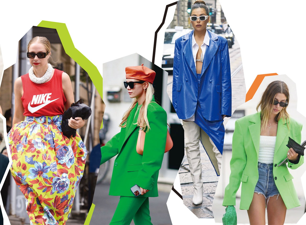 鮮やかなカラーリングで個性的に主張する。カラーミックスやトーンonトーン、ポイントカラーなど色の足し引きはさまざまに、ボールドカラーが入ることでぐんとモードアップ。