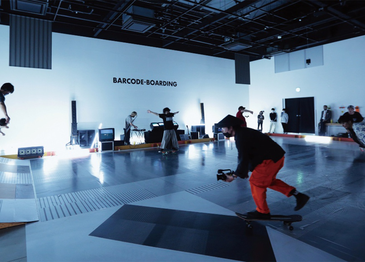 颯爽と滑るスケーターの動きとともに、スクラッチ音が鳴り響く――。床の縞模様をデッキに装着されたバーコードリーダーが読み取り、音を“滑り鳴らす”作品『BARCODE-BOARDING』。旧型のオープンリール式テープレコーダーなど電化製品を楽器化してきた和田永が、北九州のスケーターたちと試行錯誤を重ね、今年春の「北九州未来創造芸術祭:ART for SDGS」で発表した作品だ。街の見方を変えたスケボーカルチャーがメディアアートと融合。ストリートをスクラッチし、新たな音を滑り鳴らしていく。