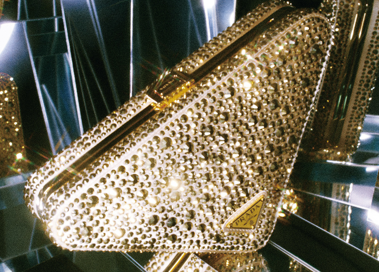 プラダを象徴するトライアングルが主役の新作バッグが登場した。ロゴプレートを配したフロントなどボディ全体を煌びやかなゴールドクリスタルが纏っている。華やかな気分を助長してくれること間違いなしのグラムな逸品は、スペシャルな日にぴったり。キラキラと光を放つポップスターのようなクラッチをスパイスにデイ&ナイトを楽しんで。