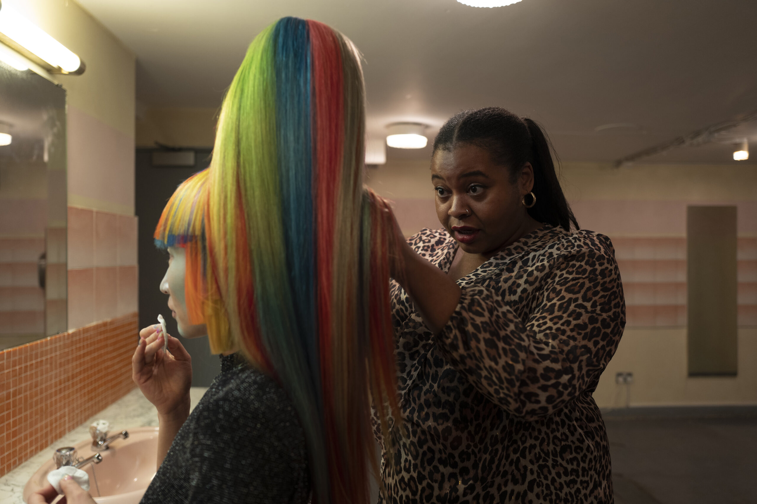 「トムとじっくり話し合って、脚本を読みこんで、リサーチすることに時間をかけました。それぞれのキャラクターを理解して研究するのは、非常に楽しい作業でしたね。僕はヘアスタイリストになる前は美術を学んでいたので、絵を描いてイメージを伝えたり、あとはウィッグで実際にスタイルを作ってトムにアイディアを共有していました。僕のアイディアを出発点にして、コミュニケーションしながら進めることも多かったです。トムはファッション学校で学んでいたこともあって、僕の作品をよく知ってくれていたし、遊び心もある。まるでファッションデザイナーと仕事をしているような感覚で楽しかったです」