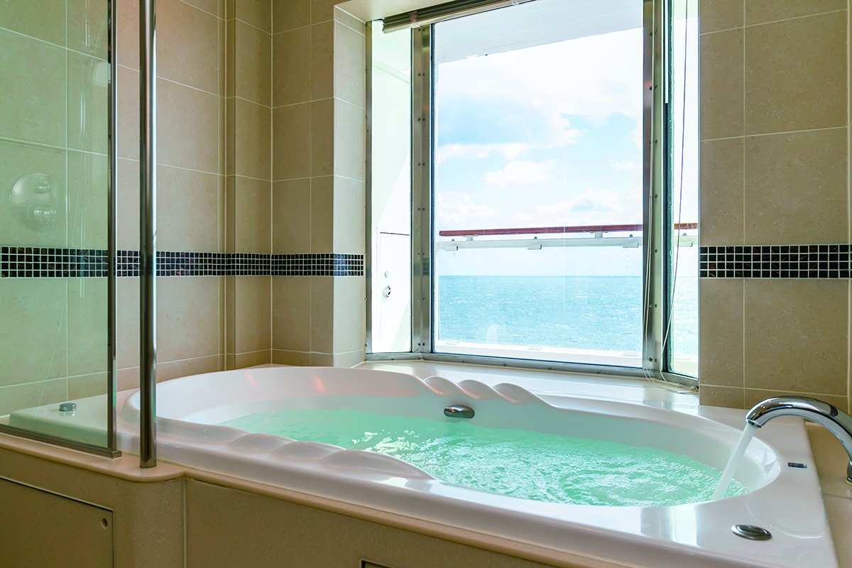 そして、すべてのキャビンにバスタブが付いています。ちなみに、トイレはシャワー付き。水回りがここまで快適であると、洋上であることを忘れてしまいそうです。