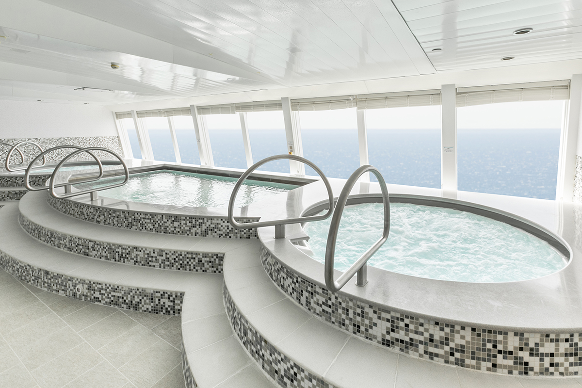 また、ウェルネス施設も充実しています。11デッキの中央にはバカンス気分を盛り上げる「シーホースプール&ジャクジー」。そして12デッキには海を眺めながらワークアウトできるフィットネス施設や「アスカ アヴェダ サロン&スパ」があります。
