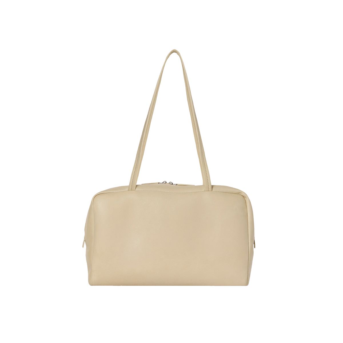絶妙なバター色がラグジュアリー感を演出。バッグ(H18×W30×D10cm)¥411,400/The Row(ザ・ロウ・ジャパン)