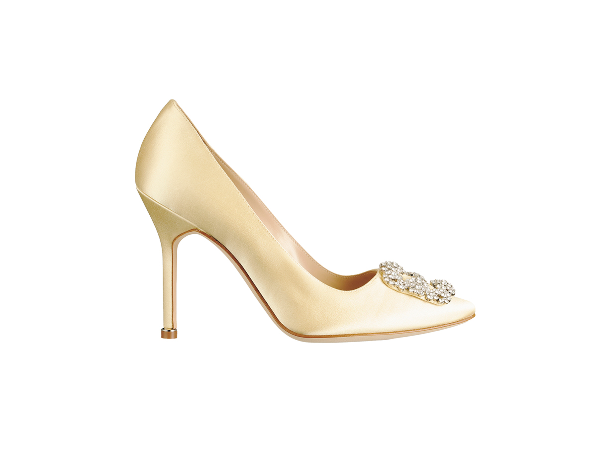 サテンにきらめくクリスタルがアクセント。シューズ ヒール10.5cm ¥221,100/Manolo Blahnik(ブルーベル・ジャパン)