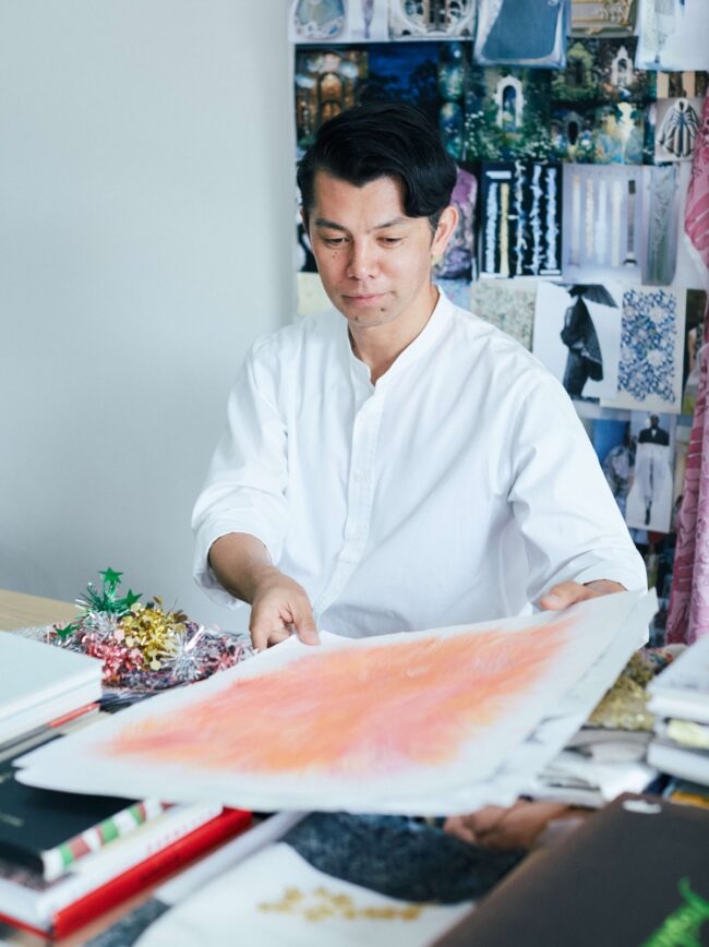 「いろんな学びを得た結果、やはり生まれ育った日本の文化伝統を吸収しない限り、西洋のデザイナーとは肩を並べるところまで辿り着けないと思ったからです。イースト・ミーツ・ウエストみたいなところをやっていきたい」