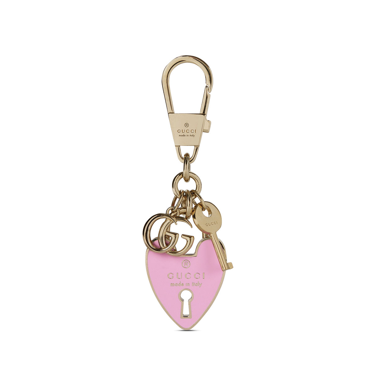 ハートシェイプのロックには、キーとダブルGのモチーフをあしらい、ロマンティックなムードをプラス。アイコニックなグッチ ロッソ アンコーラに加え、ピンクやブルーのカラーも揃う。