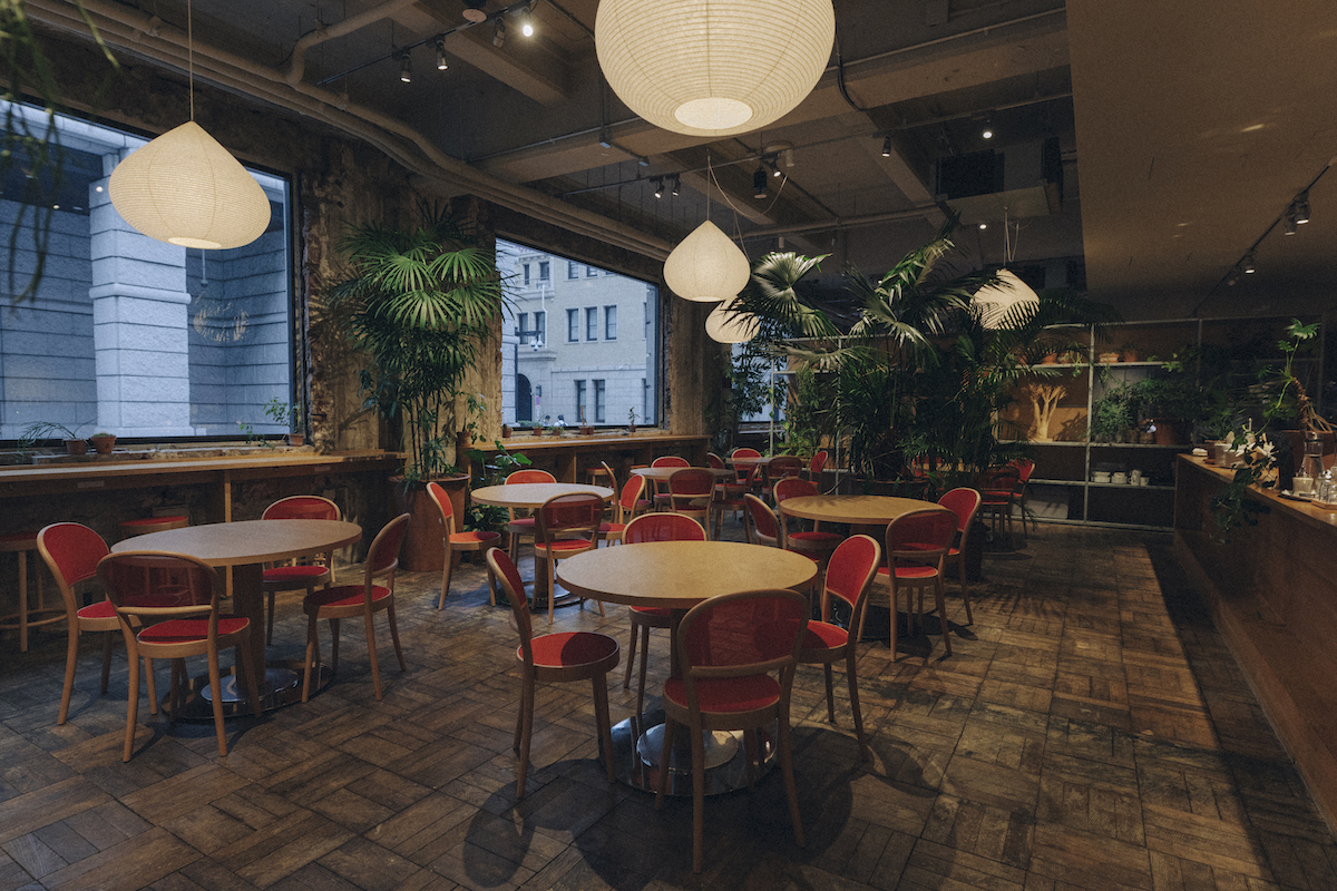 渋沢栄一が設立した第一国立銀行の別館をリノベーションし、2020年に誕生した「HOTEL K5」。今年で開業5周年を迎え、1階がリニューアルオープンした。新たに登場したのは、バー「AKAI BAR」、カフェ「CAFE DANCE」、そして居酒屋「MARUYAMA」。