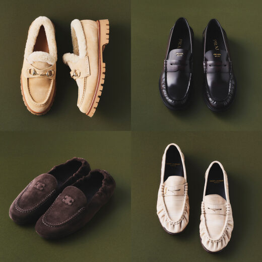 今季取り入れたいのはぬいぐるみのような変化球シューズ。ロエベのアイコン「バレエランナー 2.0」からシアリング素材が登場。70年代のランニングシューズの要素を取り入れたレトロモダンなデザインで、真っ白なシューレースがブラウンカラーをソフトに引き締めてくれる。