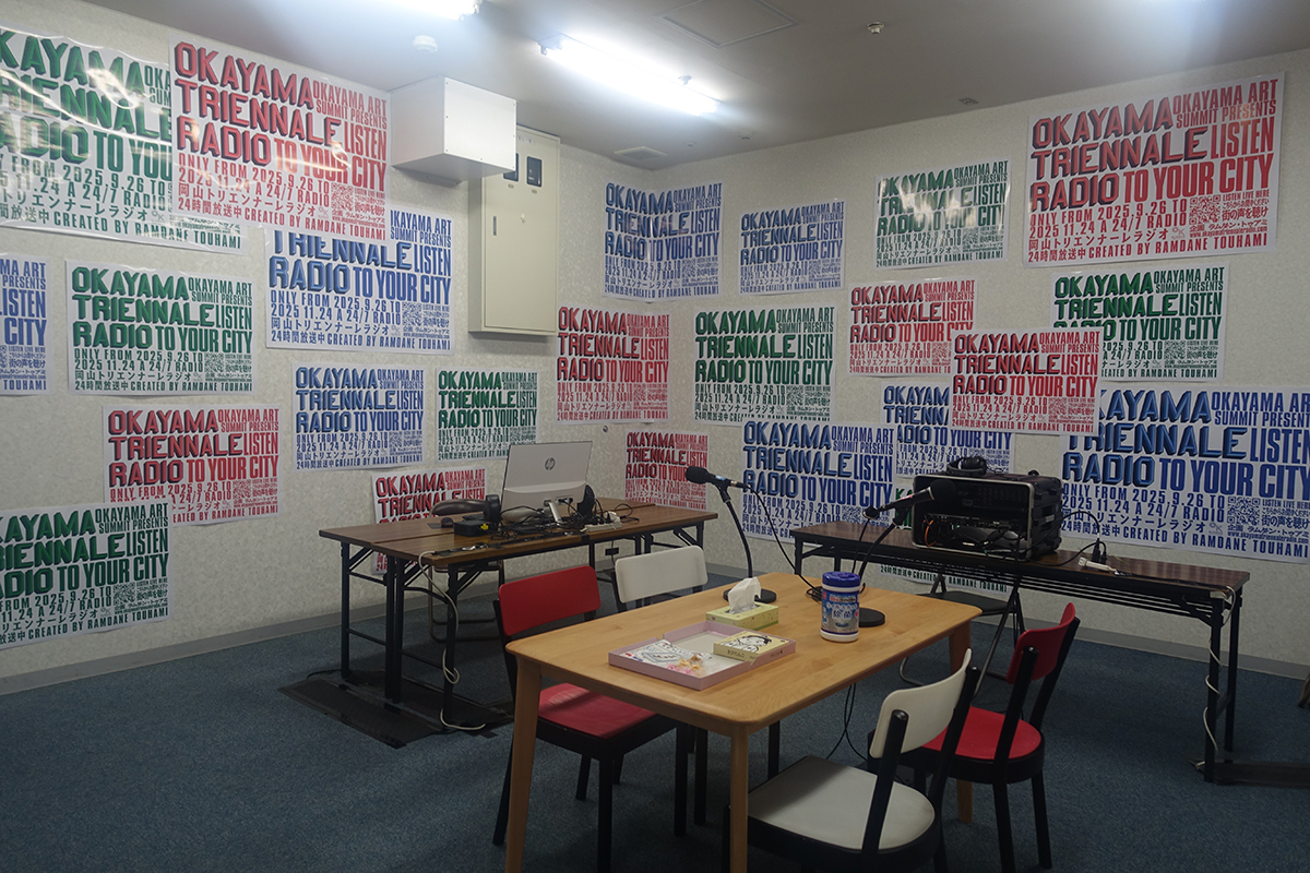 デザイナーであり起業家のラムダン・トゥアミは『オカヤマ・トリエンナーレ・ラジオ』を公開。岡山シンフォニービルに自身のラジオブースを設置し、会期中、岡山の人々の声や物語を世界中のオーディエンスに届けるという、まさに岡山と世界をつなぐ実践だ。