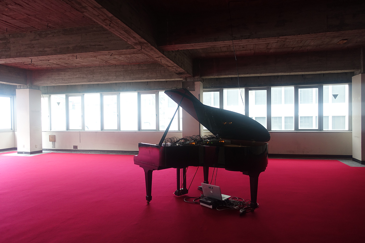 どこからともなく聞こえる音に誘われるがまま上階へと進むと、現代エレクトロニック・ミュージック界の先駆者の一人・アルカの作品『トランスフィクション』だと気づく。AIによってアルカの鍵盤タッチを学習したマグネティック・レゾネーター・ピアノが、オリジナル楽曲を延々と自動演奏を続け、幽玄な空間を演出している。