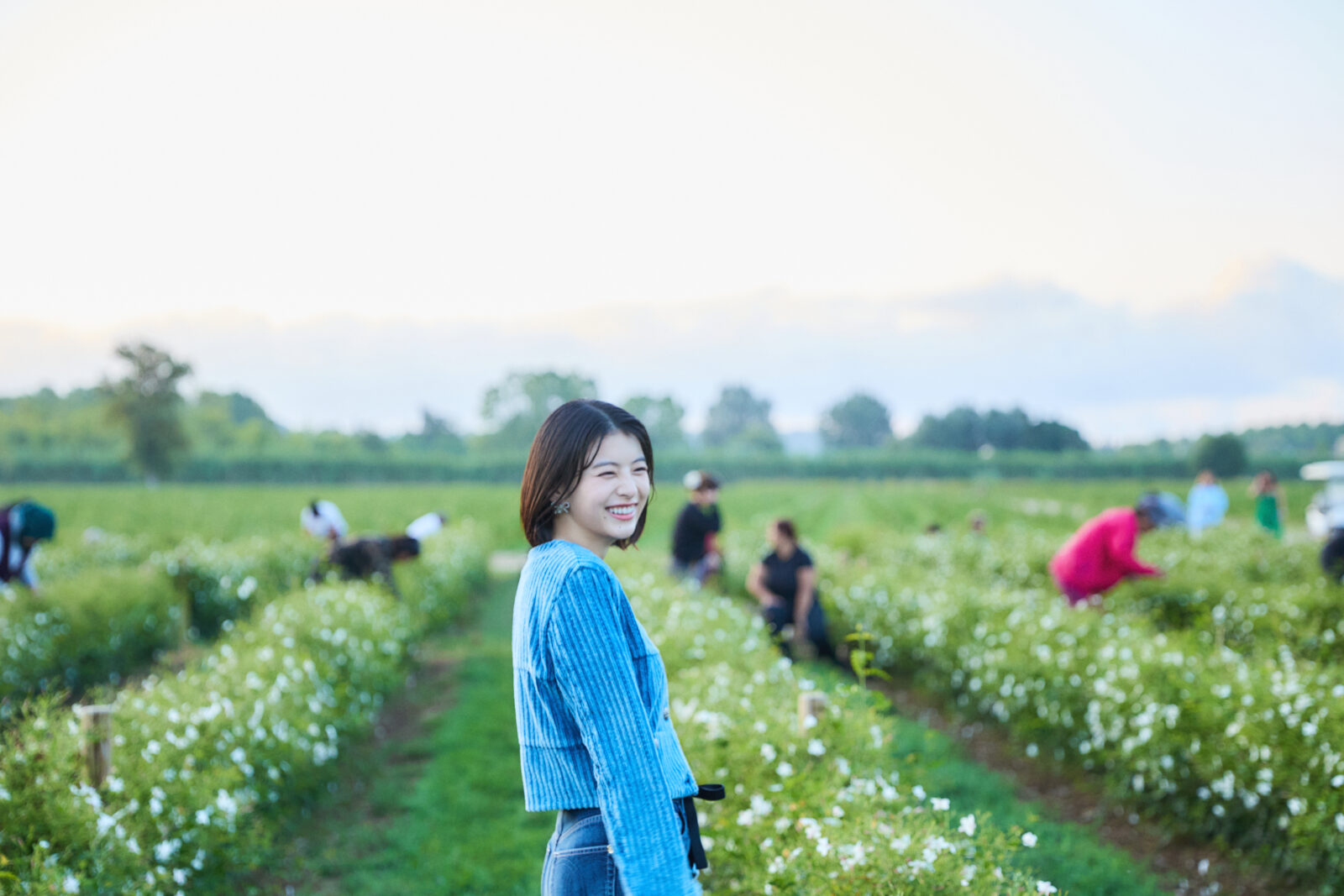 「シャネル  N°5」は、1921年に誕生したフレグランス。この名香のキーとなる香料が、グラース産のジャスミンだ。30mlボトルの「シャネル  N°5 パルファム」には、実に1000輪ものジャスミンの花が必要なのだそう! 2人が訪れたのは、南仏コートダジュールの香水づくりの聖地、グラースに広がるシャネルの専用農園。ジャスミンの開花の時期とあって、あたり一面にうっとりするような濃厚なジャスミンの香りが漂う。