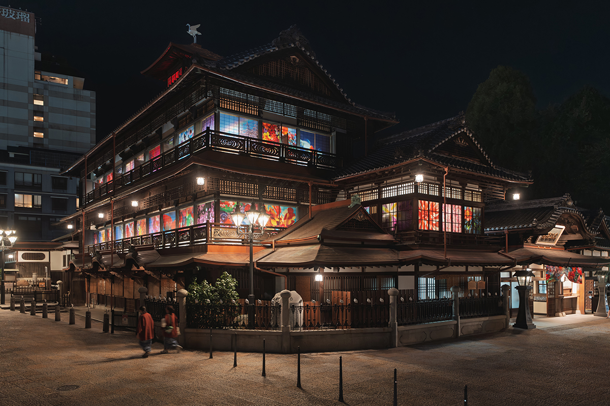 愛媛県松山市に湧く道後温泉は、夏目漱石の小説『坊っちゃん』の舞台としても知られ、約3000年の歴史を誇る日本最古といわれる温泉。その街のシンボルでもある道後温泉本館は木造三層楼、塔屋を設けた重厚感のあるたたずまい。公衆浴場として初めて国の重要文化財に指定された歴史的な建造物だ。10月10日にスタートしたアートプロジェクトは、歴史と文化が積層する空間に現代の感性を吹き込む。