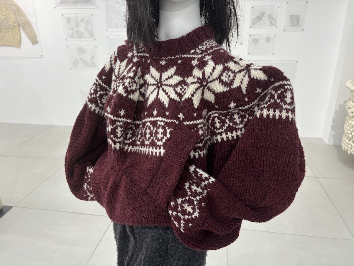 「絵を描いたり、平面の紙に粘土で山のようなものを作ったりして、かなりざっくりとしたイメージを共有しています。本来、編み図というのは理屈の世界で、完璧に考えられたものなのですが、自分はニットについて専門的に学んでいないので、どうしても感覚的な伝え方になってしまう。いつも無茶ばかり言って、それをニッターさんたちが何とか形にしてくれていて。そんな関係性でやらせてもらえていることが、本当に幸せなことだと思っています」