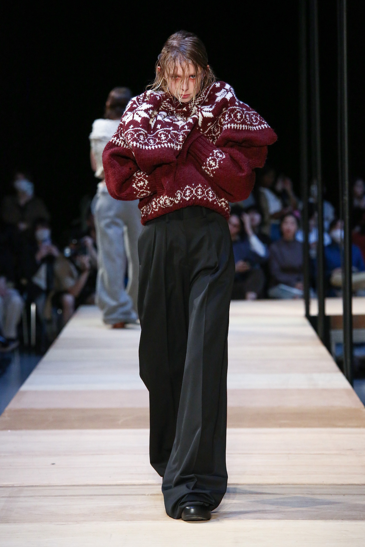 「実はそれも、本番が始まる5分前くらいに、演出家の保科路夫さんが『フィナーレだけ笑顔にするのはどう?』と提案してくれたんです。しかも直接ではなく、インカム越しに(笑)。終始“困っていた”ということで一番印象的なコレクションでしたが、今振り返ってみると、そうやってギリギリまで悩んで進めていたことが、結果的に良い方向に行ったのかなと思っています」