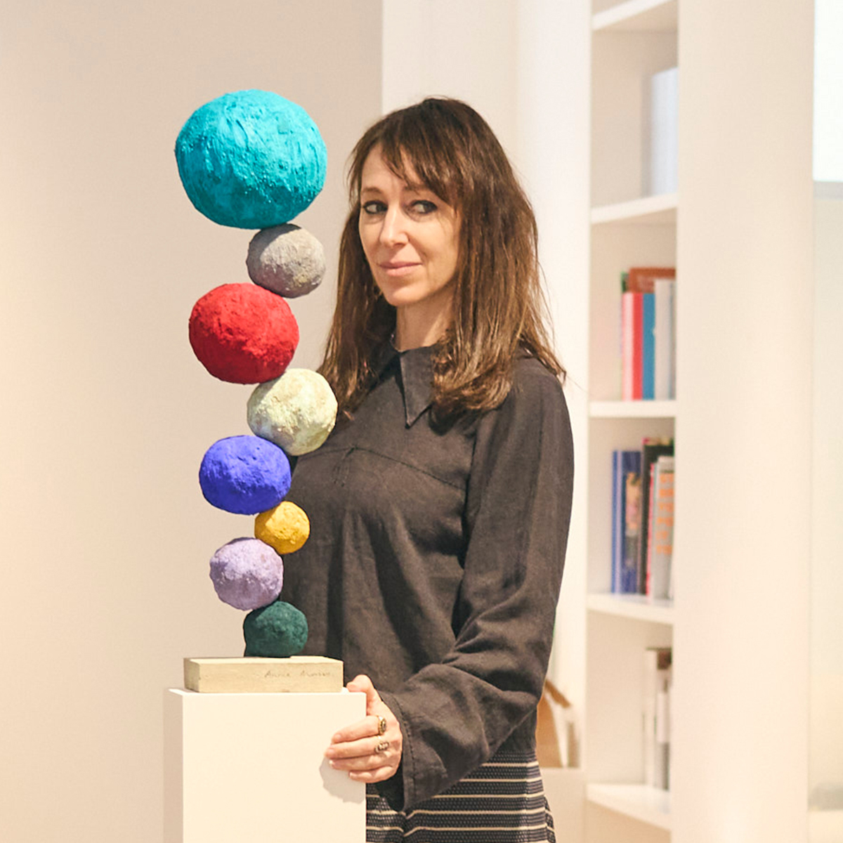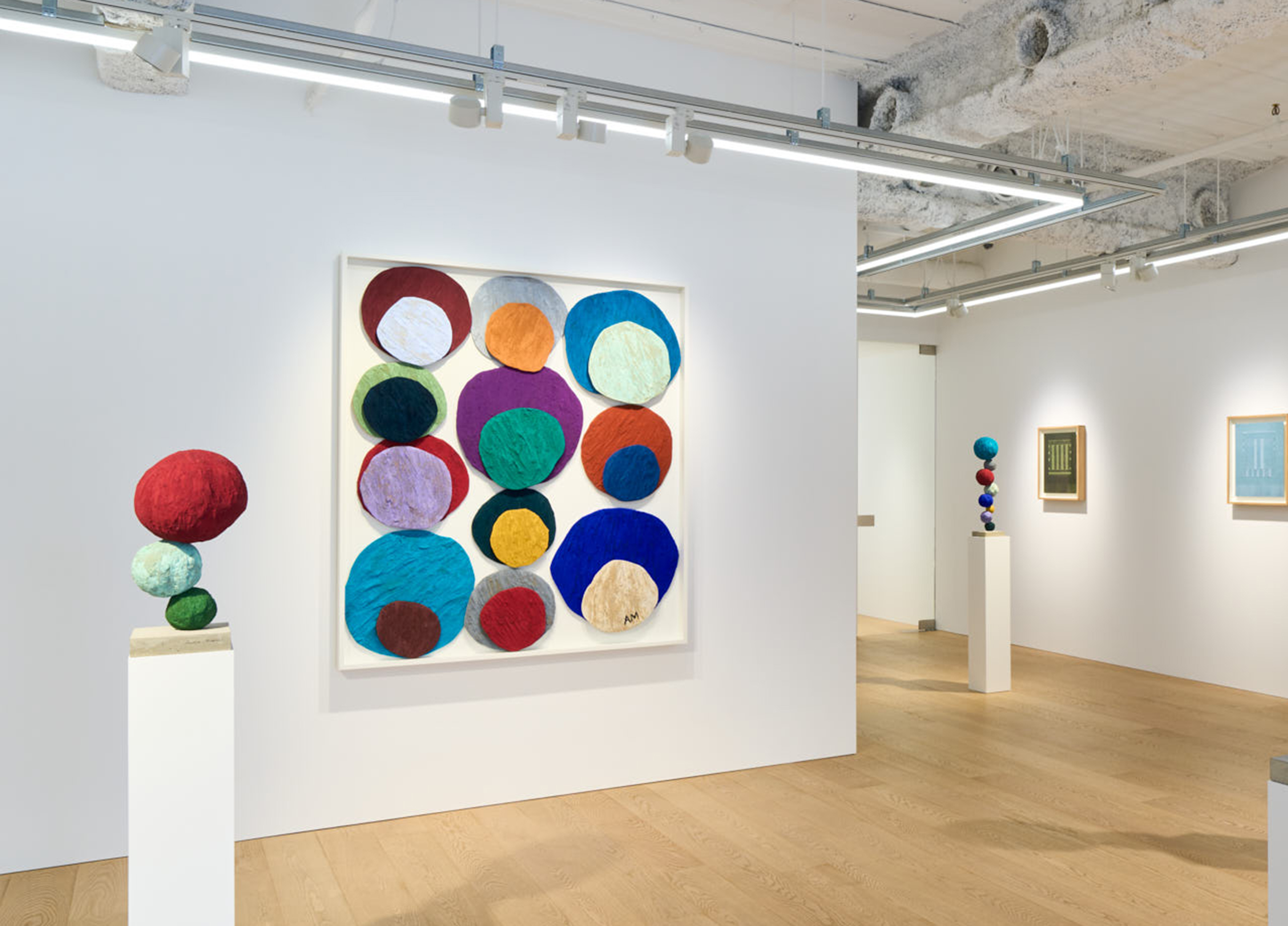 アニー・モリス「私のほうも球体を重ねた彫刻の『Stack』シリーズとともに、タペストリーやレリーフ状の作品も展示しています。作品の大きさもさまざまです。一つひとつの実物と向かい合って、ぜひモノとしての質感をたっぷり味わってほしいです。彫刻作品については、顔料が乾く前の生々しい感じをとどめるように彩色してあります。作品と対峙してみると、それぞれの表面の豊かな表情が見てとれるはずです」