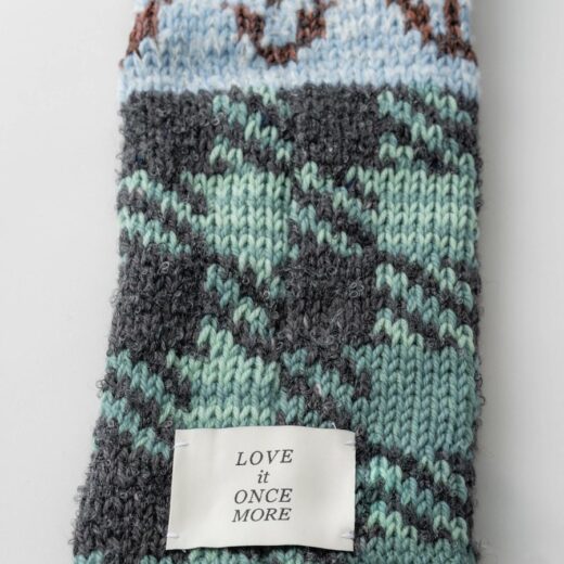 「LOVE it ONCE MORE」というブランド名には、「もう一度愛して」という思いを込めています。捨てられてしまうはずだった余剰糸を使って、新しい命を吹き込み、新たな価値を持たせる。そういったポジティブな考え方で、この名前をつけました。ものを大切にして、もう一度輝かせるということを大事にしています」