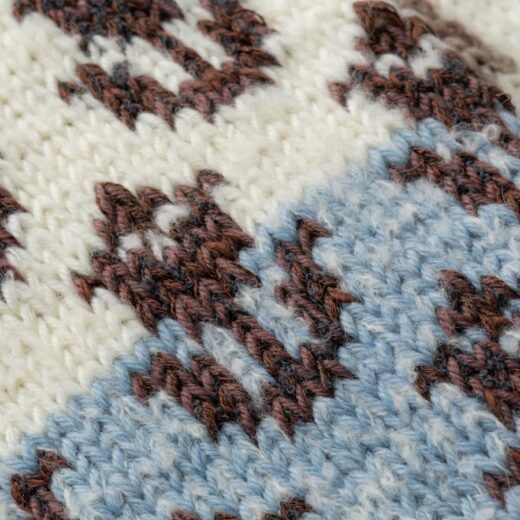 「ニットの生産には、どうしても大量の余剰糸が出てしまうので、それらを使ってアイテムを作ることでただ捨てられるのではなく、新しい魅力的な形に変えています。余剰糸は色や太さが混在していて数が安定していないんですが、逆に面白さとして捉え、うまく組み合わせながら柄編みやジャカードにすることで、オリジナリティを表現しています。私にとって余剰糸はデザインのヒントやアイデアをくれるポジティブな素材なんです」