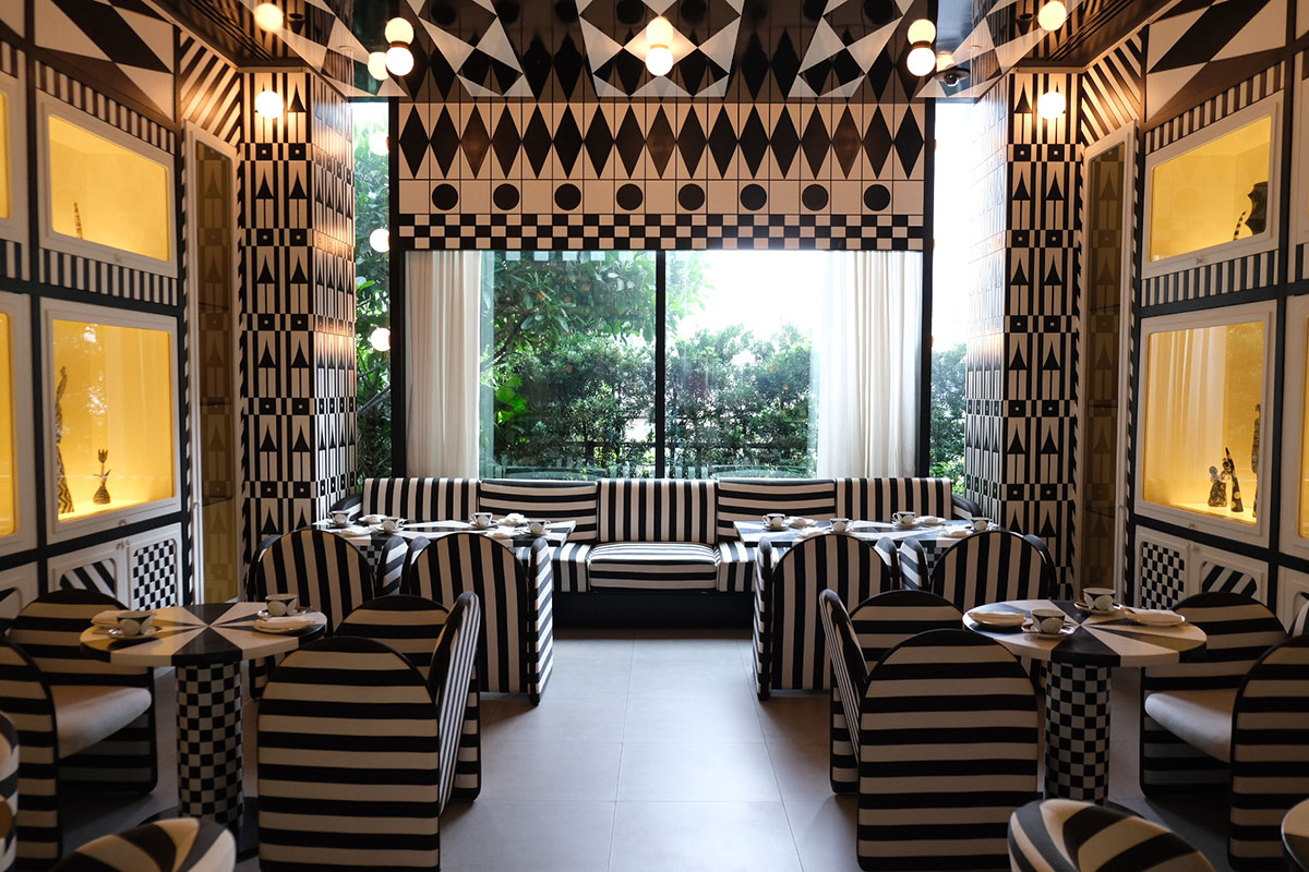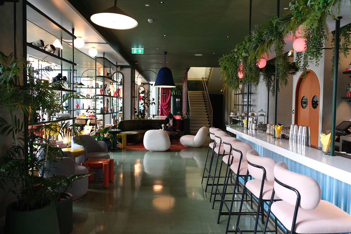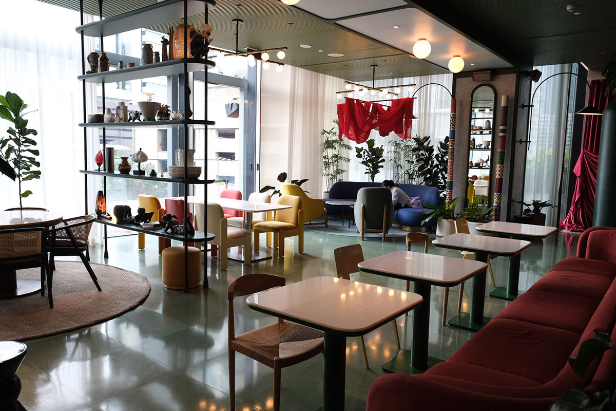 ホテルのハブとなる「ザ・パーラー」は、タイ料理をメインにしたカフェレストラン兼バーだ。緑豊かな植物がオアシスのように配置され、カラフルなミッドセンチュリー調の家具が心地よいリズムを生んでいる。