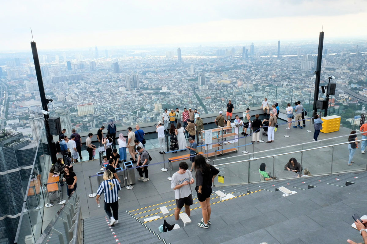 地上314メートルの高さを誇るビルの最上階に位置する、バンコクで一番高い屋外ルーフトップバー「スカイビーチ」