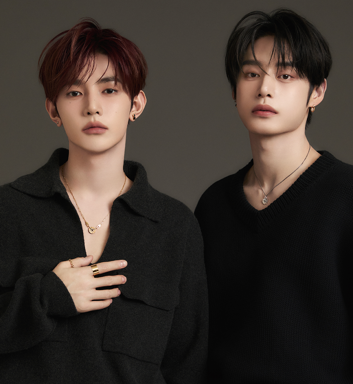ジウンとハオは「星」モチーフの「CELESTIALS」のネックレスチャームを着用。夜空に無数に輝く星は、希望や幸運のシンボル。世界をつなげる夜空に思いを込めて、大切な人とつながるお守りとして身につけたい。
