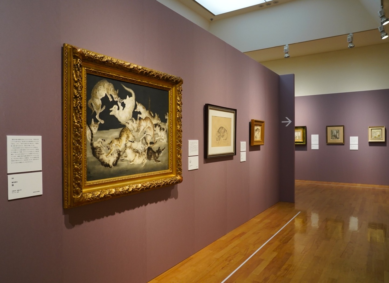 この展覧会は、西洋と東洋の歴史と感性が出会い、またアーティストの創作意欲を刺激する特別な存在として猫に注目する。西洋の技法を学びながら自らの個性を確立しようと奮闘した近代日本の洋画家たちにとって、猫は魅力的なモチーフだったのだ。とりわけ1920年代にパリに渡って人気者となった藤田嗣治はたびたび猫を取り上げ、巧みにセルフブランディングに利用してきた。第二次世界大戦後に至るまでの彼が描いた猫の変遷は、さらにその先に現在の漫画やアニメにもつながる道筋が見えるようで興味深い。