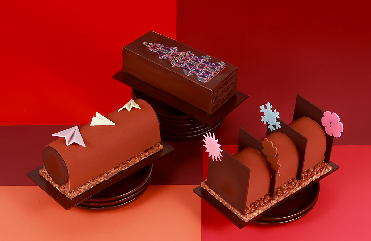ジャン=ポール・エヴァンが追い求めてきた「夢」と「カカオ」への情熱を込めた、ビュッシュ ドゥ ノエル3種が登場。カカオのムースと、山椒がほのかに香るクレームブリュレ、ビスキュイショコラなどを組み合わせた「ビュッシュ トゥー モモン」、キャラメルクリームを忍ばせた「ビュッシュ レクレ」、冷凍配送可能な「ビュッシュ エヌコロサン」をラインナップ。すべてジャン=ポール・エヴァンがカメルーンの村に創設した「エヴァン エヌコロサン」のカカオを使用している。