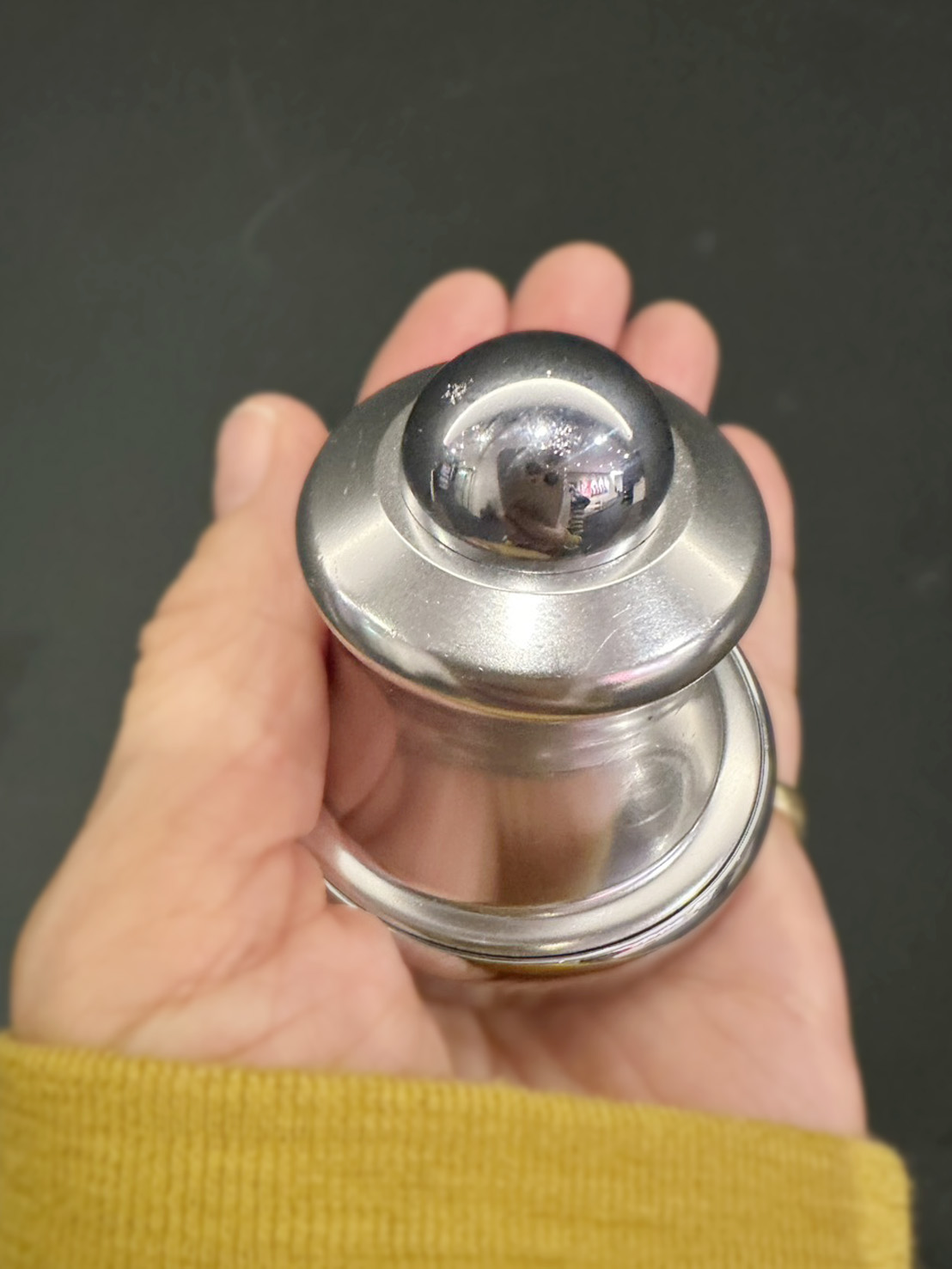 「イーストロンドンのデザイナーズヴィンテージショップ『files london』で見つけて、『このフォルム、唯一無二だな』と心をつかまれました。日本の工芸らしさを感じる質感に、ヨーロッパのモダンなムードが自然に混ざっていて、いかにもロンドンらしい出合い。晩酌のときにオリーブを少しのせたり、タコスパーティーではライムやトッピングを入れたりと、小さいのにしっかり存在感を発揮してくれます。高台がつくる立体的な影も美しく、使っていないときもつい眺めてしまう、食卓を彩るアートピースです」