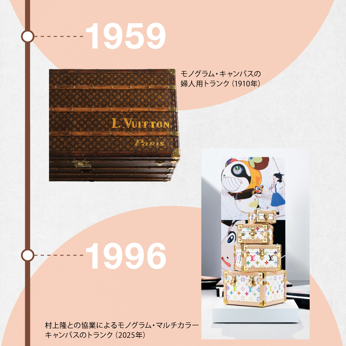 時代と旅の変化とともに、モノグラムは進化。トランクから、しなやかなバッグとして現代のライフスタイルに寄り添う旅のアイコンへ。また多彩なアーティストとのコラボレーションを通じて、表現の幅を広げ続けている。130周年を迎えた2026年、新たなスペシャルエディションのモノグラム バッグ・コレクションが登場した。