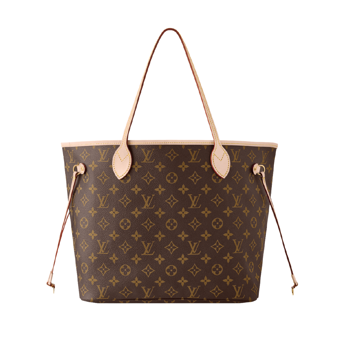 2007年の登場以来、メゾンのアイコンとして愛されている「ネヴァーフル」。ゆとりあるサイズ感と軽さに加え、最大100kgの耐久性を誇る万能トートバッグ。洗練されたモノグラム・キャンバスにヌメ革のトリムがアクセントを添え、ハンドステッチのハンドルや調節可能なサイドレースが細部まで優美に仕上げられている。書類やノートPCもすっぽり収まるエフォートレスなデザインで、日常から旅まであらゆるシーンで活躍する。