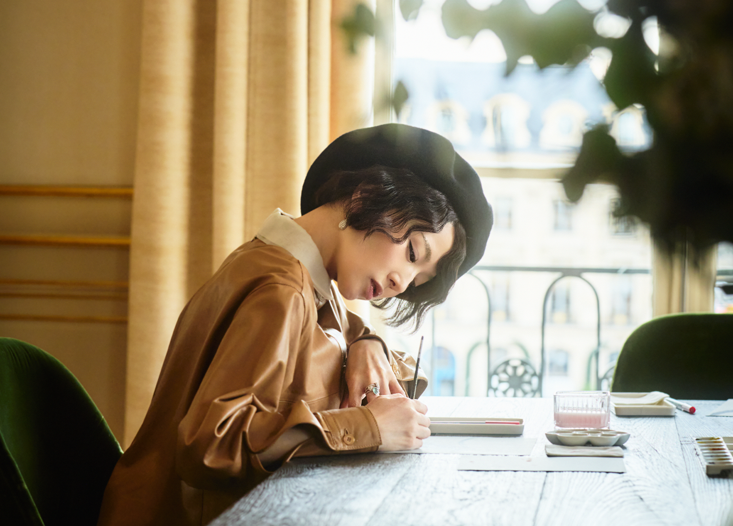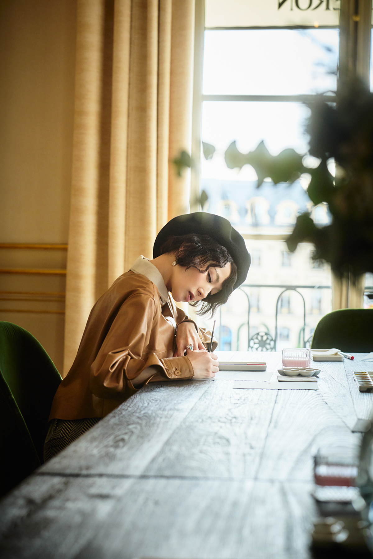 「ヴァンドーム広場という場所も特別ですし、ブシュロン本店の建物自体の意匠が素晴らしく、NumeroTOKYO3月号の撮影で身につけさせていただいたハイジュエリーも、アーカイヴ作品も、一つひとつがとても素晴らしく特別なものばかりで、幸せな時間でした。ブシュロンの歴史あるメゾンでありながら、モチーフなどに遊び心が溢れているところに惹かれていましたが、今回アトリエを訪れアーカイヴや新作ハイジュエリーを拝見し、長い年月をかけて築いてこられた重みと、同時に今めいた柔軟な発想に身軽さを感じました。執念と諦念のような両極の同居に私は惹かれているとあらためて気付きました」