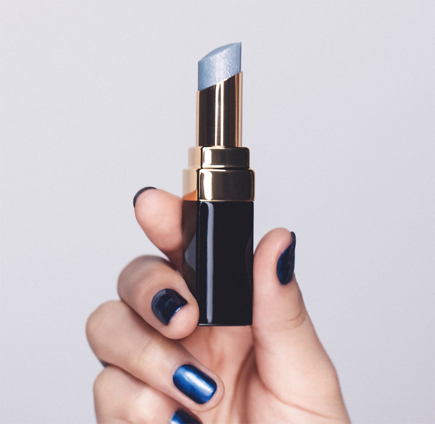 4. 「ブルーリップは人生初!透明感があってツヤツヤで、ピンクのラメも潜んでいるのが可愛い。唇につけた瞬間のツヤとぷっくり感もお気に入りです」(JURIN)。ルージュ ココ フラッシュ 284 ベイビー ブルー ¥6,490(限定品)/Chanel(シャネル)