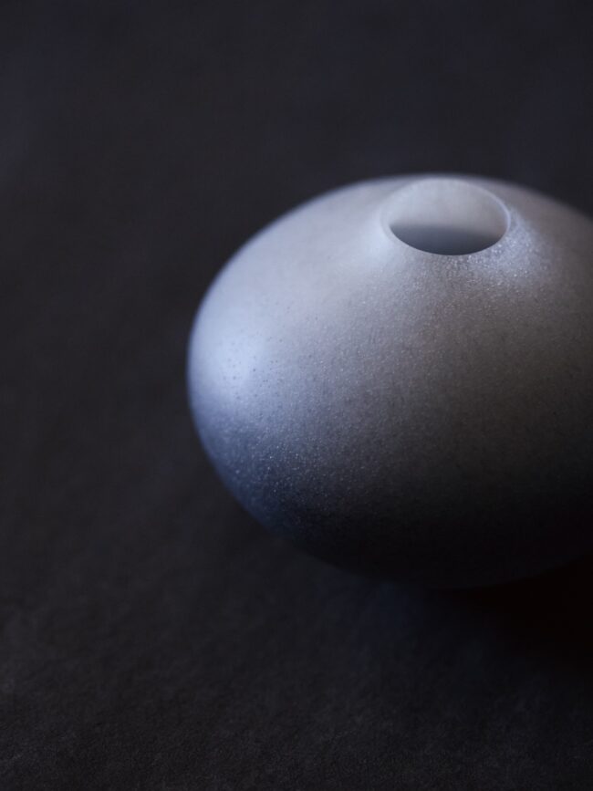 「人によって心地いい形があると思いますが、私にとっては、グラスだったらシャープなラインとお尻と口の形のバランスです。原型は全てろくろを引いているので、同じように見えるグラスも、二つと同じものはありませんし、きっちり揃えようとはしません。特に、蓋ものは毎回好きなように作っていきます。 形を作ることはやっぱり楽しいです」