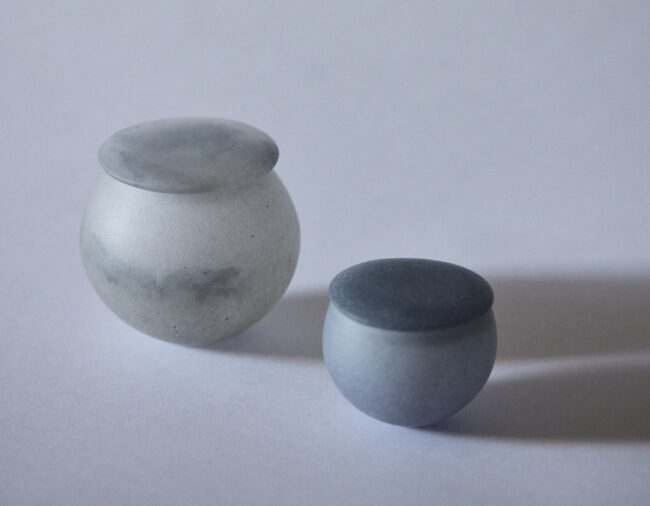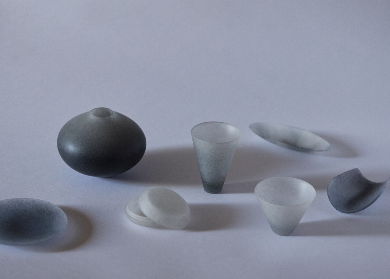 曇り空のような、水墨画のような繊細なグレーのグラデーションと端正なラインが生み出す、ミニマルなガラスの器。ガラス作家・波多野裕子は、砕いたガラスの粉末を型に詰めて焼成する、伝統的なガラス工芸のパート・ド・ヴェール寄りのキルンキャスティング技法を用いて、日常に寄り添う道具を作る。そこにたどり着くまでの道のりとその創作への率直な思いをたずねた。