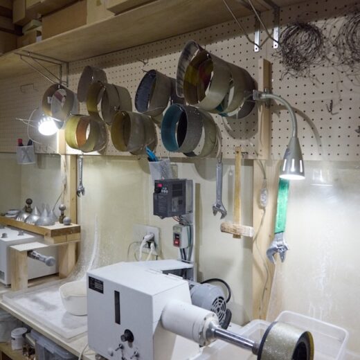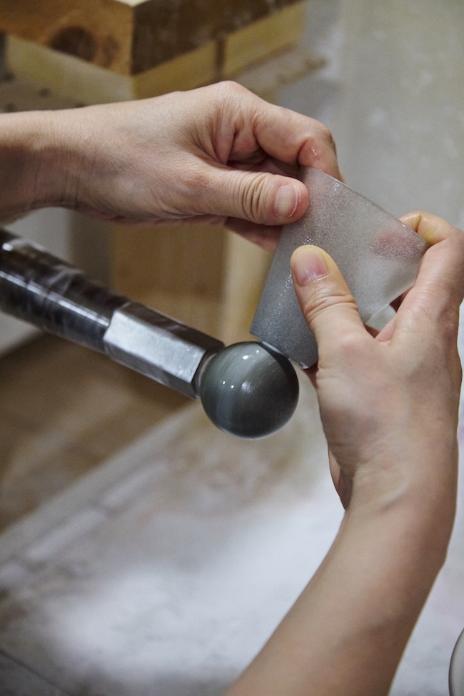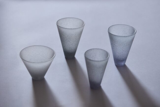 「私に関しては、窯から出した後の作業が多いため、陶芸ほどは窯から出して終わりということではありません。色の混ざり具合というのは、その時次第で計算できることではありませんが、そこから研磨によって自分好みに薄さや形を調整できます。 陶芸において、私が得意でなかったのは、 ろくろで引いたサイズから焼き上げると縮むということでした。 縮みも想定して作ることが、自分の中にすっと入ってこなかったのです。ガラスは縮みがない上に、窯出し後、もう一度、自分で手触りや口元の質感を変えられる。 最後は自分の手に委ねさせてくれる、納得いくように終わりを決められる点が魅力だと思います」