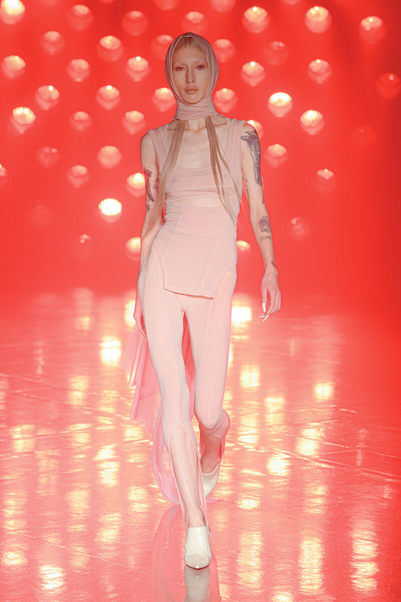 2026年春夏コレクションにて初のショーを開催。「7月5日の予言」をテーマに、不確かな未来に人はどう振る舞うのかという問いを提示。ランジェリー要素やルームウェアの延長にあるアイテムなど、日常と地続きの服を通してメッセージを表現している。写真左は、肌への負担を抑えるアルガンオイル配合素材を開発した「セカンドスキン」ラインのルック。