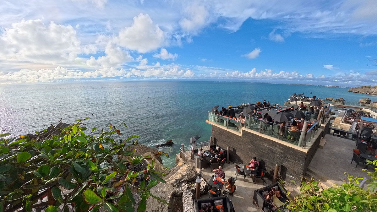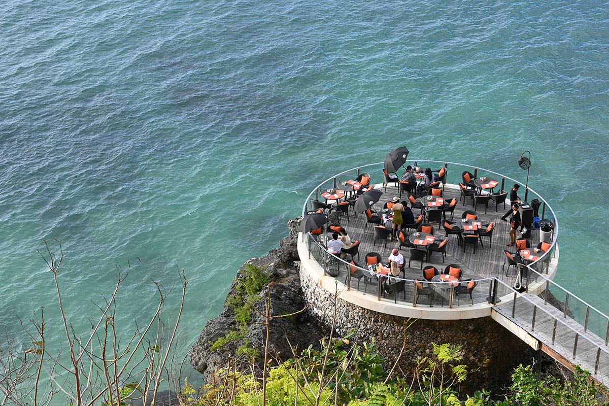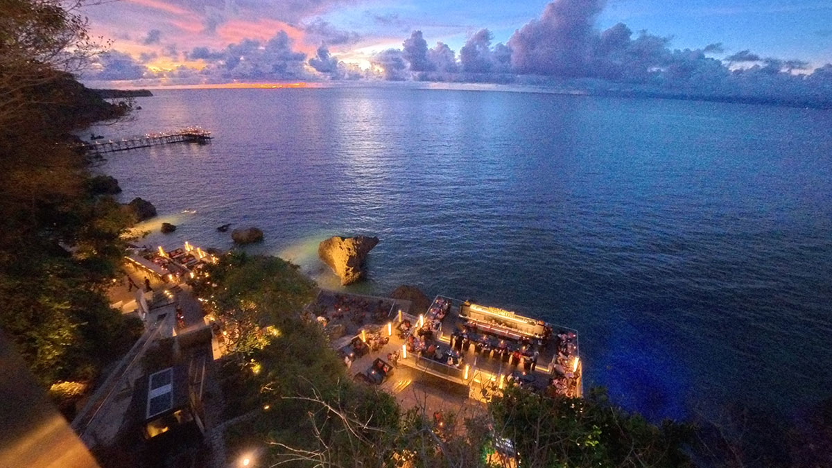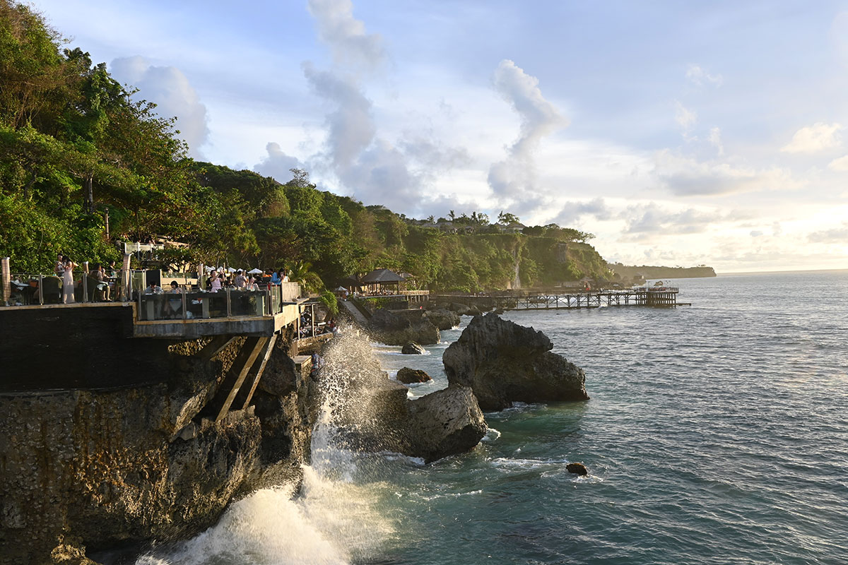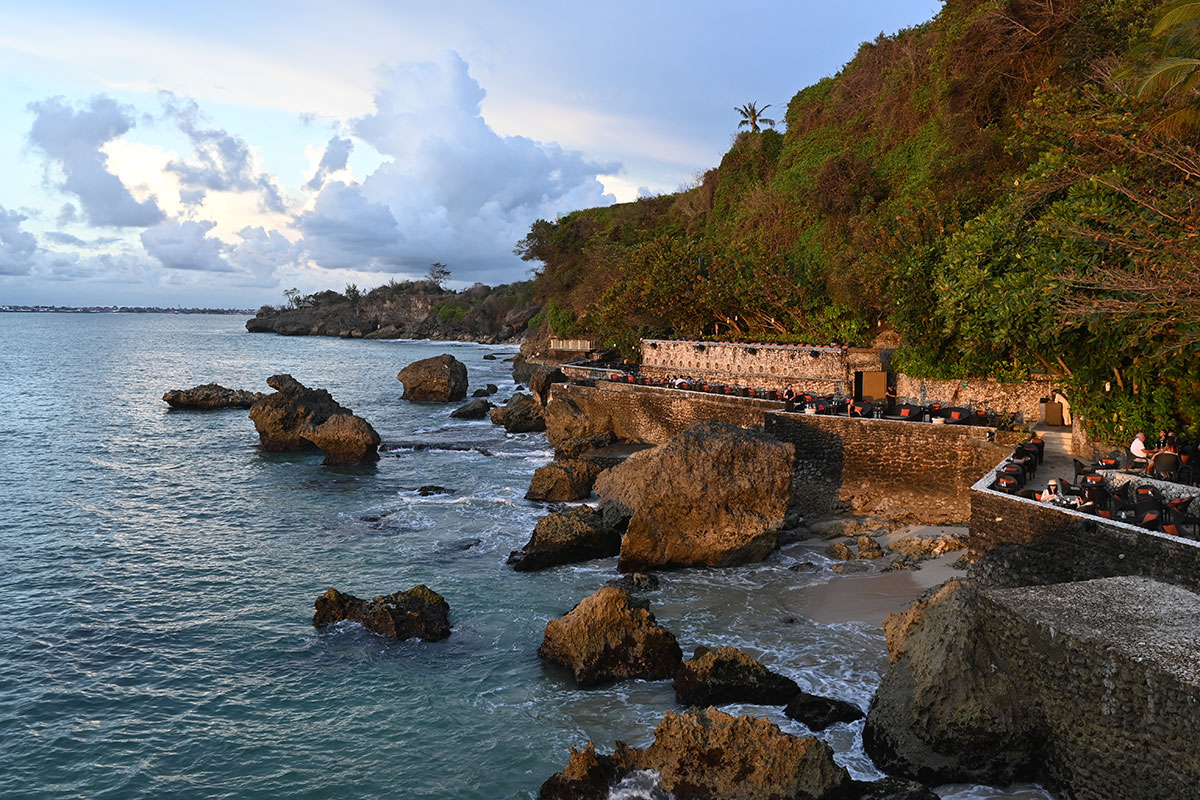 バリ島のサンセットスポットとして最も名高い場所といえば、断崖にせり出すように建つ「ロックバー」だろう。「アヤナ リゾート バリ」からビーチ側へ向かい、インクリネーターで崖下へと降り立つと、その名の通り岩石の上に建つ海の特等席とも言えるバーが現れる。