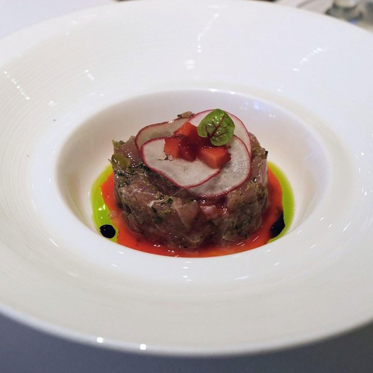 前菜の「マグロのタルタル ストロベリーガスパチョ添え」には、バリ島の白ワイン「ISOEA」を合わせるのもいいだろう。