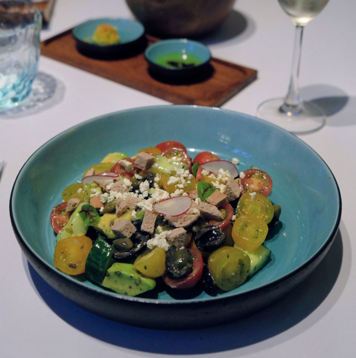 ドレスアップしてとっておきのディナーを愉しむなら、2022年11月「アヤナ セガラ バリ」内にオープンした「Scusa(スクーザ)」へ。バリ島ならではの豊かな海産物や、リゾート内にある「アヤナファーム」から届けられる瑞々しいハーブや野菜を用いた地中海料理がテーブルを彩る。