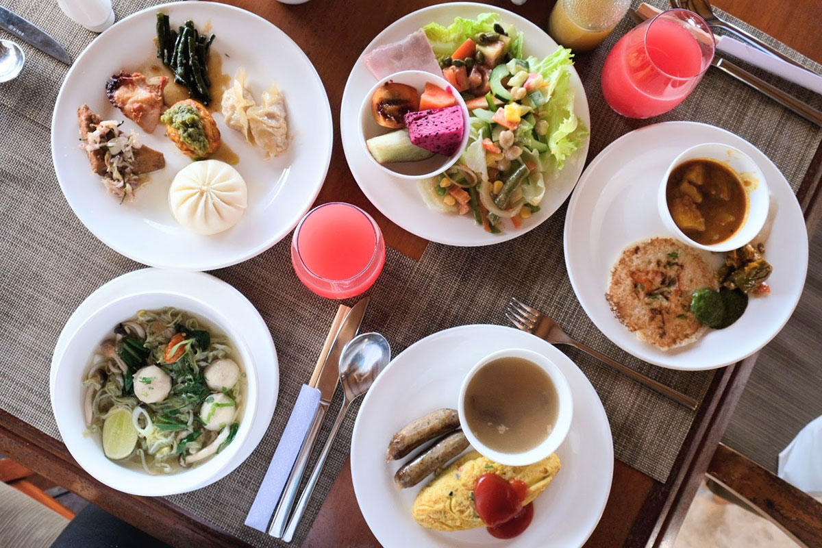 アヤナ内にある「パディ」では、東南アジア文化が混ざり合うバリならではの朝食風景が広がる。スパイスの香りが食欲を刺激するインド風パンケーキの「ウッタパム」や、旨味が凝縮されたインドネシアの焼きそば「ミーゴレン」。さらにショウガやターメリックなどを使ったインドネシアのハーブ&スパイスドリンク「ジャムウ」は、細胞から体を目覚めさせてくれるはずだ。多種多様な南国フルーツやヨーグルト、焼きたてパンが並ぶビュッフェ台は、視覚からもエネルギーを与えてくれる。