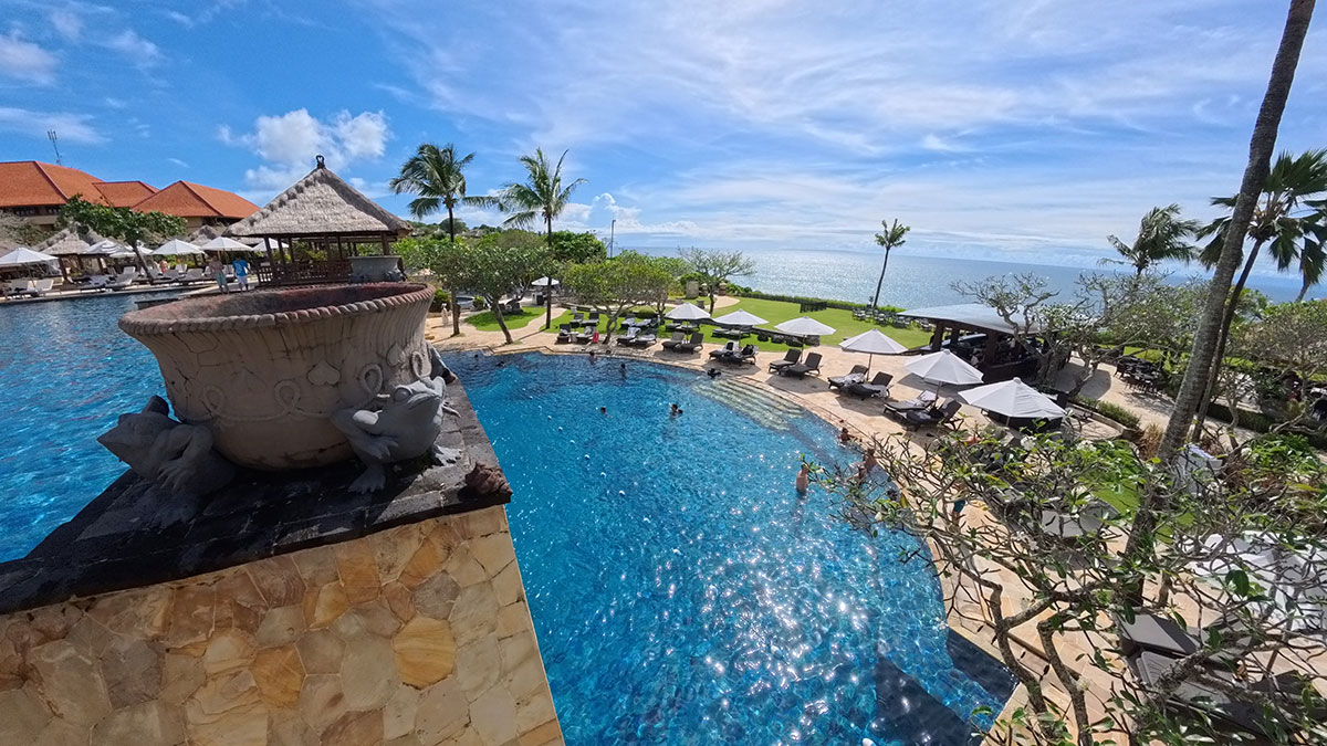 中でも注目すべきは、2025年5月に大規模な客室リニューアルを遂げた5つ星ホテル「アヤナ リゾート バリ」だ。崖の上に位置する「アヤナ リゾート バリ」は、インド洋の水平線に沈むサンセットを特等席で眺められるホテルで、開業時から存在するアヤナの象徴でもある。