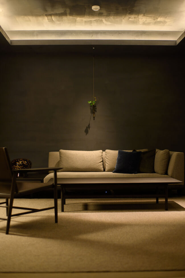 以前の歴史ある外観を生かして改修した、部屋数4室の和のスモールラグジュアリーな宿。一部屋ごとに専属バトラーがつき、きめ細かいサービスを行う。到着すると女将から歓迎の思いを込め、茶室でまずは一服が振る舞われる。部屋はいずれも90㎡以上のゆとりあるスイートルームで、それぞれ異なるデザイン。今回は温故知新をコンセプトにした、グレーの聚楽壁とウッドが織りなす静謐な和モダン空間の部屋に滞在した。