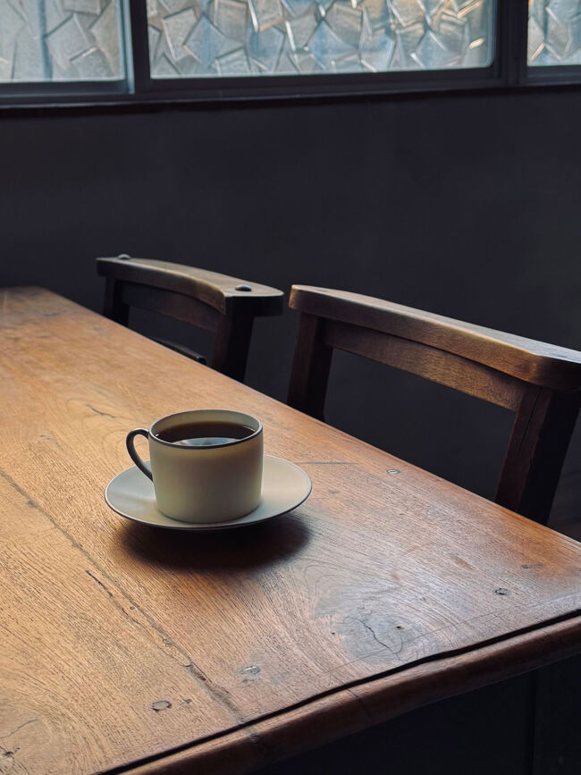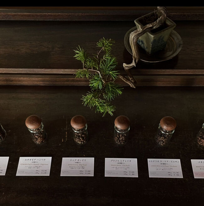 昭和の型板ガラスからの柔らかい光に包まれる店内は、ヴィンテージ家具を配した落ち着く空間。自家焙煎される珈琲豆は、オリジナルブレンドのほか、中煎りから深煎りまで9種ほど。その時の気分で豆を選ぶと、そこから豆を挽き、ハンドドリップで提供してくれる。店主の繊細さが伝わる、クリアで澄んだ味わい。丁寧な仕事を待つ時間もまた、金沢旅の良き記憶となるはずだ。