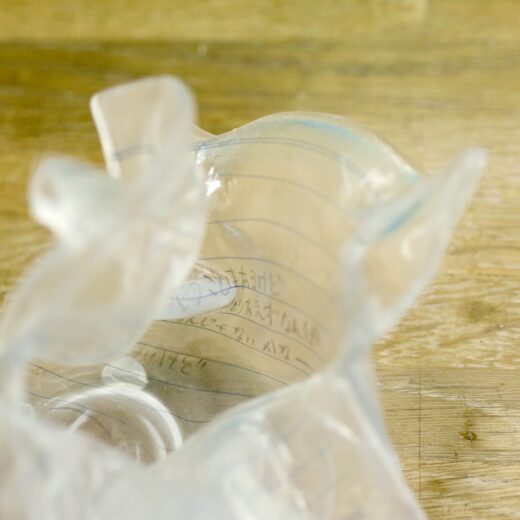 そこから、ガラスとアイデンティティを組み合わせて、英語と日本語の二つ言語を扱う中で、言葉が自分を変えていく様をガラスで表現するという内容を論文にまとめました。英語では一人称が『I』で固定されているのに対して、日本では私、僕、自分など、言葉のロールプレイングができるというところ、その変化だったりとか、年を重ねるごとに使う言葉も変わっていく。例えば、水を加えると溶けてしまうガラスを使うことで、そのガラスの性質を、人が年齢とともに失っていくものに重ねてみたりとか」