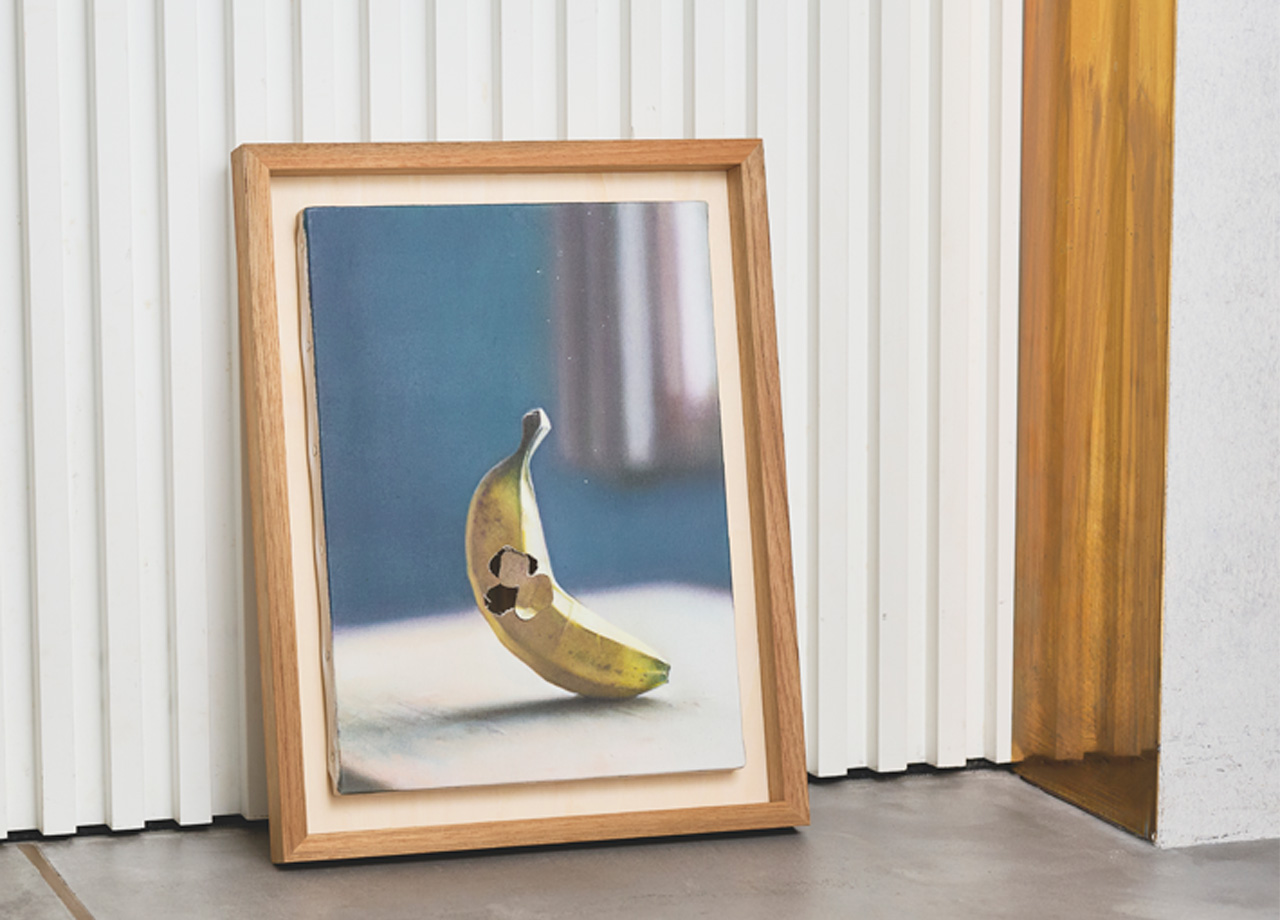 現代アーティスト・薄久保香による、緻密に描き写すことで完成された絵画を切断し、その断片を再配置する「断片の力学」シリーズ。「バナナは学術分類ではベリーに入るのに、苺はベリーではない」という事実を起点に制作された本作は、「切ってはいけない」絵を、苺の花から着想したかたちに小さく切断することで、私たちが当たり前に信じていることの輪郭に触れる。