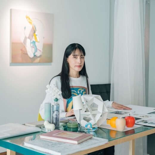ガラス造形作家・今田莉野生は、言語に基づくアイデンティティや感情の刹那をすくい上げることを主題に、ガラスを媒介に思考を視覚化する多角的な制作を行う。言葉を発することへの感情の揺らぎ、心の中のつぶやきを可視化させた、吹き出しのようなオブジェ『つぶやきのかたまり』(左)。他者とのコミュニケーションの中で生まれる言葉と感情の残り香をガラス膜に押し込み「感情の内側」のかたちとして表現した『Between』(右)。