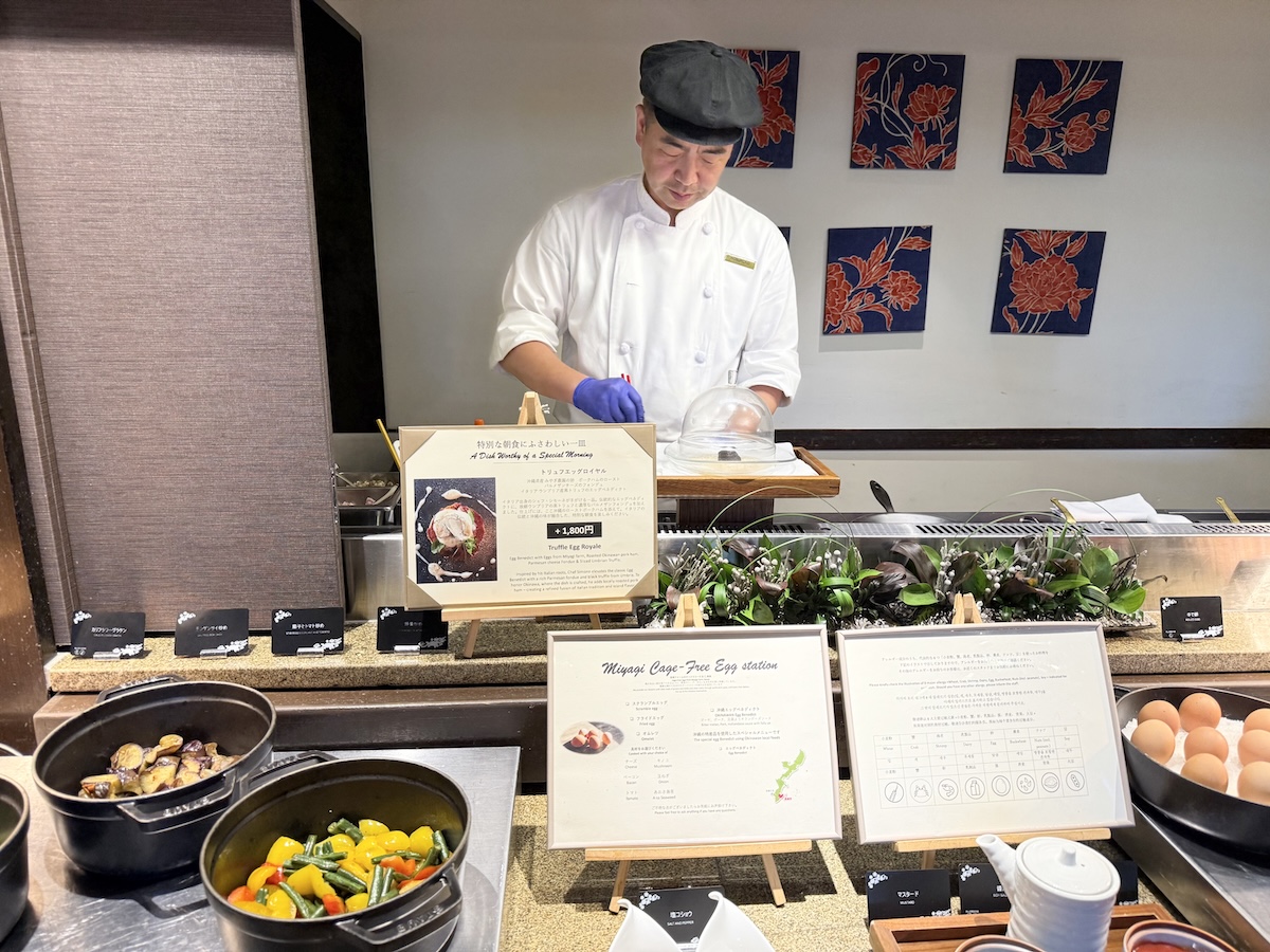 そして特筆すべきは、見た目にも美しいパンのバリエーションと、オムレツやエッグベネディクトなどの卵料理が揃うライブキッチン。チーズやハムといった定番に加え、あおさ海苔やゴーヤといった沖縄らしい具材まで。ゴーヤ入りのエッグベネディクトを口にした時、「ここは“海外のThe Ritz-Carlton”ではなく、“沖縄のThe Ritz-Carlton”なんだ」と、じんわりうれしくなりました。一皿ごとに、この地の空気や文化が染み込んでいて、朝から五感が満たされていく、そんな贅沢な時間を堪能させていただきました。
