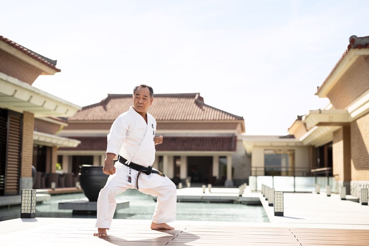 2日目の朝、少し早起きして向かったのは、ザ・リッツ・カールトン沖縄が提供する、特別なアクティビティプログラム。トレーニングウェアに着替え、静かな朝の空気を胸いっぱいに吸い込みながら向かった先に現れたのは――なんと沖縄空手界のレジェンド、剛柔流の継承者にして範士九段・池宮城政明先生。伝統の技を体現する先生が、宿泊者向けに空手を直接教えてくださるなんて…、なんとも贅沢で特別な体験! さすがThe Ritz-Carlton!! 琉球空手の基本的な型や動きを教えていただき、見よう見まねで挑戦した人生初の空手。先生はとても気さくで明るい方で、笑い声の中にも凛とした空気が流れるひと時。護身術も教えていただきながら、しっかり汗をかいて、身体だけではなく、心まで整うような1時間でした。